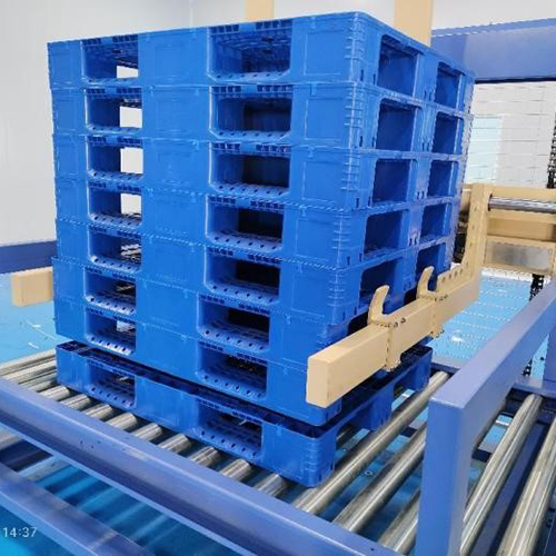 本设备采用进口品牌(SIEMENS)PLC+触摸屏(Schneider)控制,实现智能化操作管理,简便、易掌握,多种编组形式调整方便。可大大地减少劳动力和降低劳动强度,提升企业的生产线管理水平。采用高速、平稳、节省空间之理念设计。采用分开式托盘、更快速、更节省空间。 一机多用,调整迅速,可用于多种规格产品码垛。